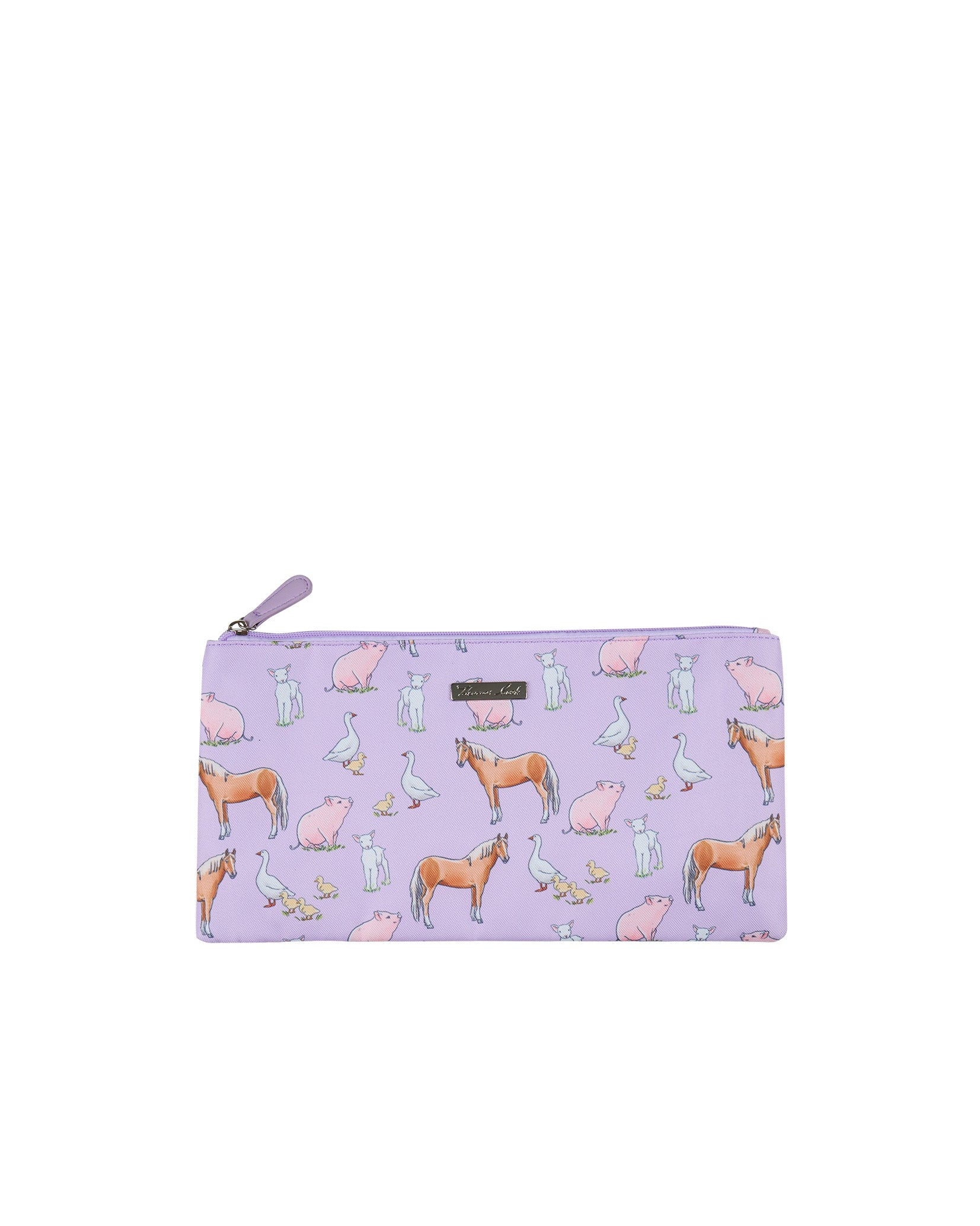 Original hand drawn multi colour print, zip closure, internal zip pocket, logo metal badge