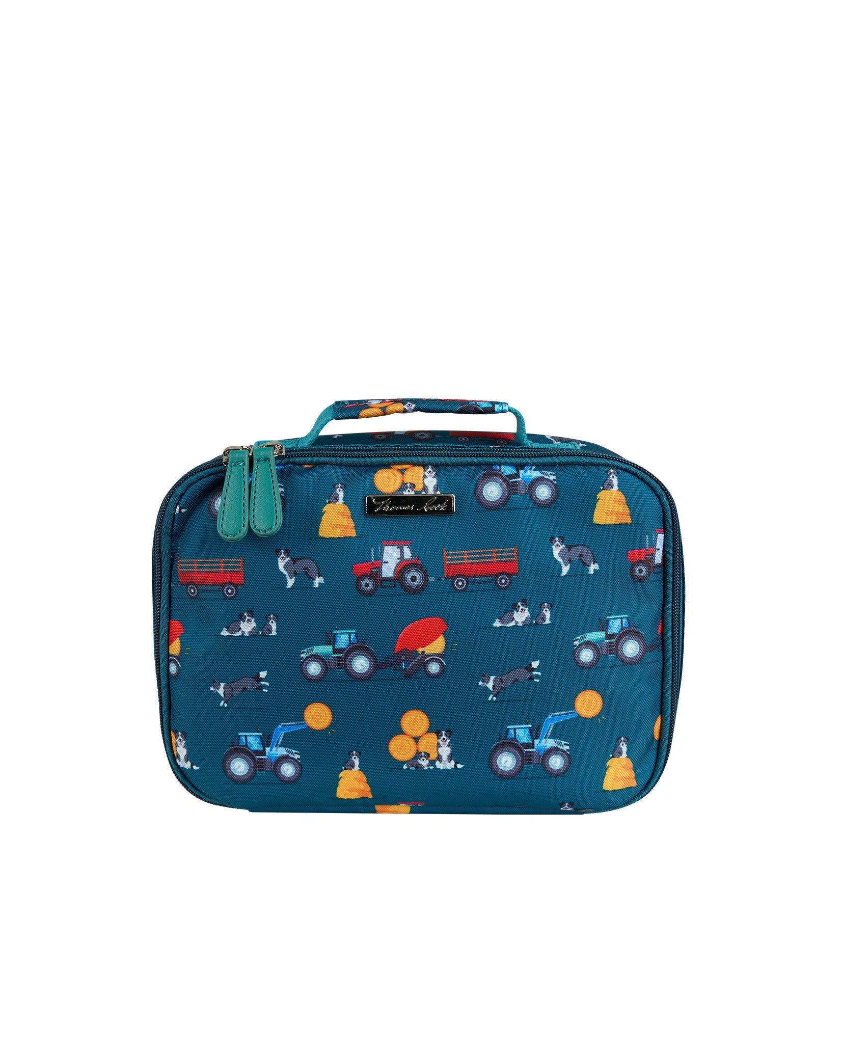 Original hand drawn multi colour print, carry handle, zip closure, internal pocket, logo metal badge