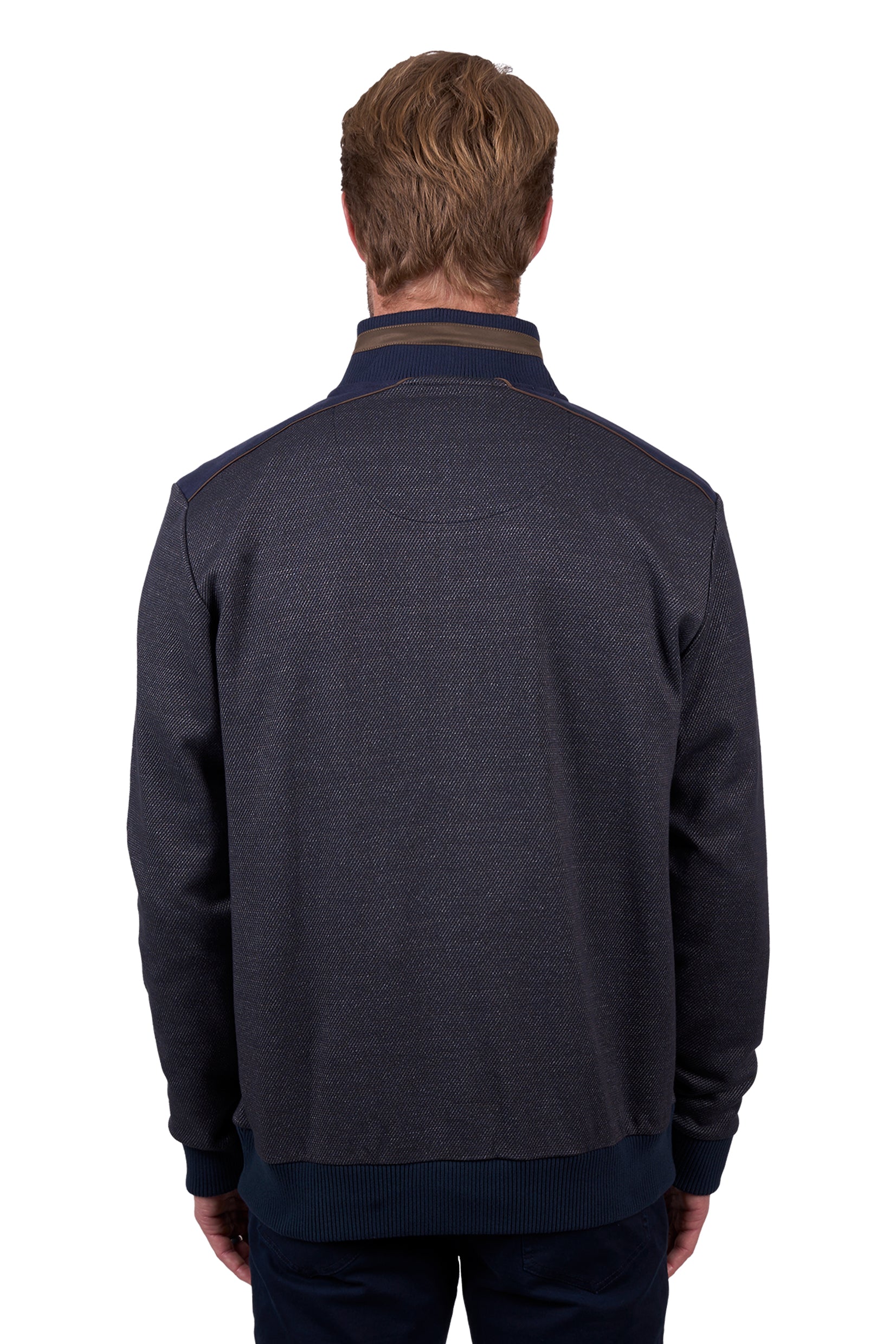 Lightweight rugby knit with chest pocket, textured knit, mock suede detail on collar, front opening, shoulder panels and chest pocket, rib collar, sleeve cuff and hem to keep shape, 1/4 placket with premium quality metal zip closure, horseman embroidery on chest